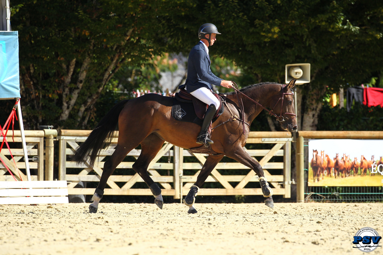 Le podium a été complété par FOLLOW ME CHAMPEIX AA, né chez Hélène Hermann dans la Creuse, terreau de champion. Le fils d’Upsilon et d’Ulyssa Champeix, elle-même par Milor Champeix AA, a reçu la meilleure note de NEP totalisant 20,1 points pour la phase sur carrière aux commandes d’Anais Torres. Malgré un parcours parfait sur le cross, les 5 points de pénalité modèle et 5 points de pénalité style ont relégué le grand gris propriété de Serge Lenoir à la néanmoins très honorable troisième position avec un total de 30,1 points estampillée de la mention Élite. « Par sa taille et sa morphologie il fallait l’économiser à 4 ans et c’est ce que ses propriétaires ont fait », explique Hélène Hermann à la tête de l’élevage Champeix. « Il n’a cette année couru que trois concours et à chaque fois avec réussite. À Pompadour il a été très performant, très facile sur le cross, ne regardant absolument rien et très réactif devant les obstacles. Il a déroulé une très bonne NEP où il a reçu de très bonnes notes. Il devrait normalement continuer sur le Cycle Classique l’an prochain, mais il a été demandé par des Britanniques donc il sera peut-être exporté ».