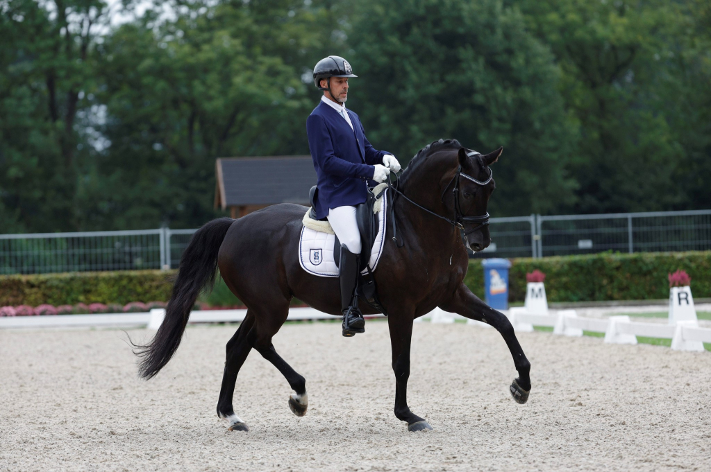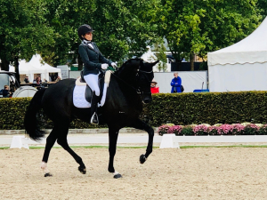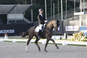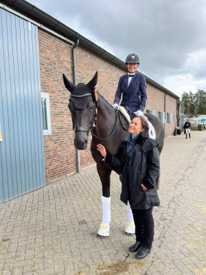 Juste derrière à la 33ème place de l'épreuve Qualificative se classe APACHI VD BIEBOSSCHEN sous la selle de Claudia Chauchard avec 75,4%. Le duo se révèle lors de la Petite Finale et en repart avec la 6ème place ! Une excellente prestation pour cette deuxième épreuve qui s'élève à 80,2% grâce à 8,7 au trot, 7,2 au pas, 7,7 au galop, 8,4 en soumission et 8,1 en perspective. Le hongre oldenbourg est un fils d'APACHE et DONNA VDB par DON FREDERICO.