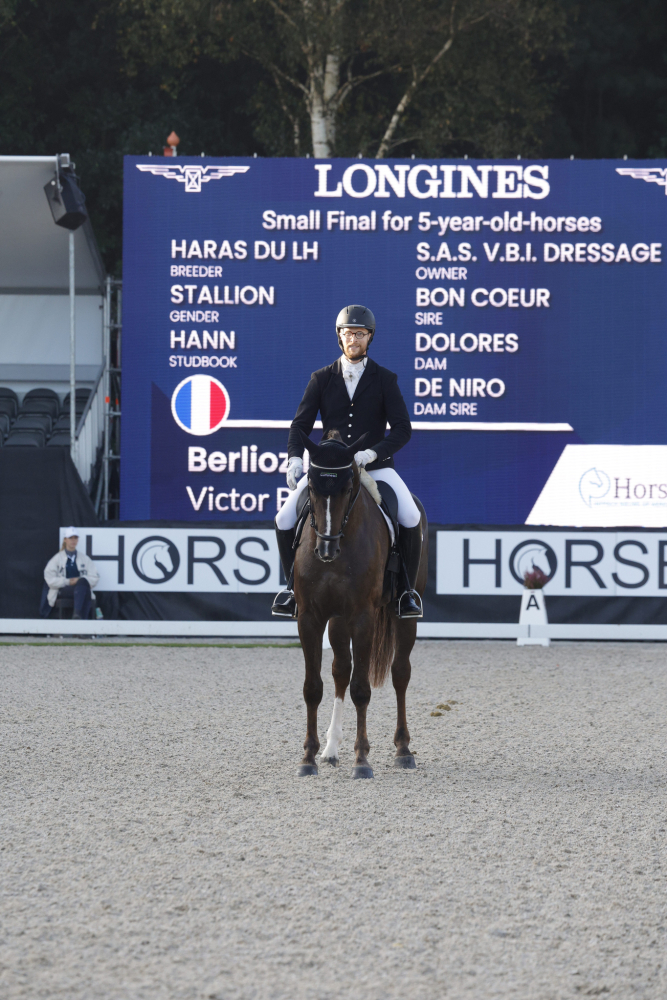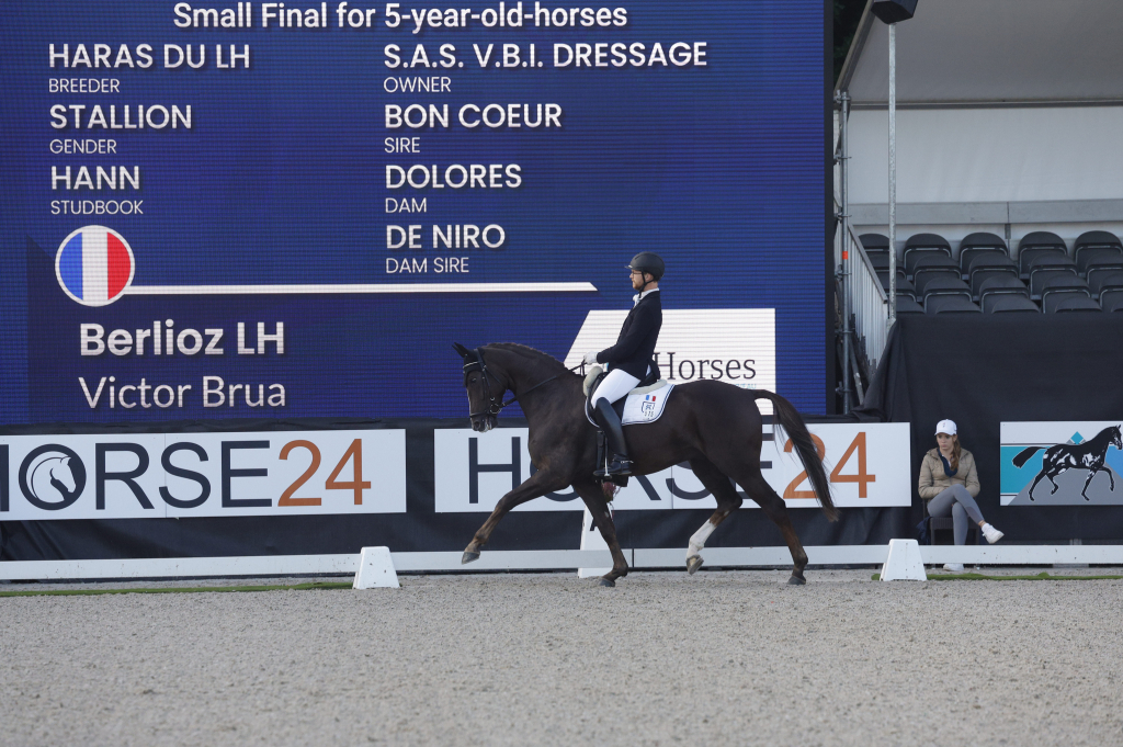 BERLIOZ LH associé à Victor Brua a vécu une belle expérience sur ce Championnat. Le fils de BON COEUR et DOLORES LH par DE NIRO a reçu la moyenne de 73,8% équivalent à la 32ème place de l'épreuve qualificative. Partant sur la Petite Finale, il obtient 76,8% et se classe 18ème. Le mâle hanovrien est né chez Jean-Claude Ferrand en Mayenne.