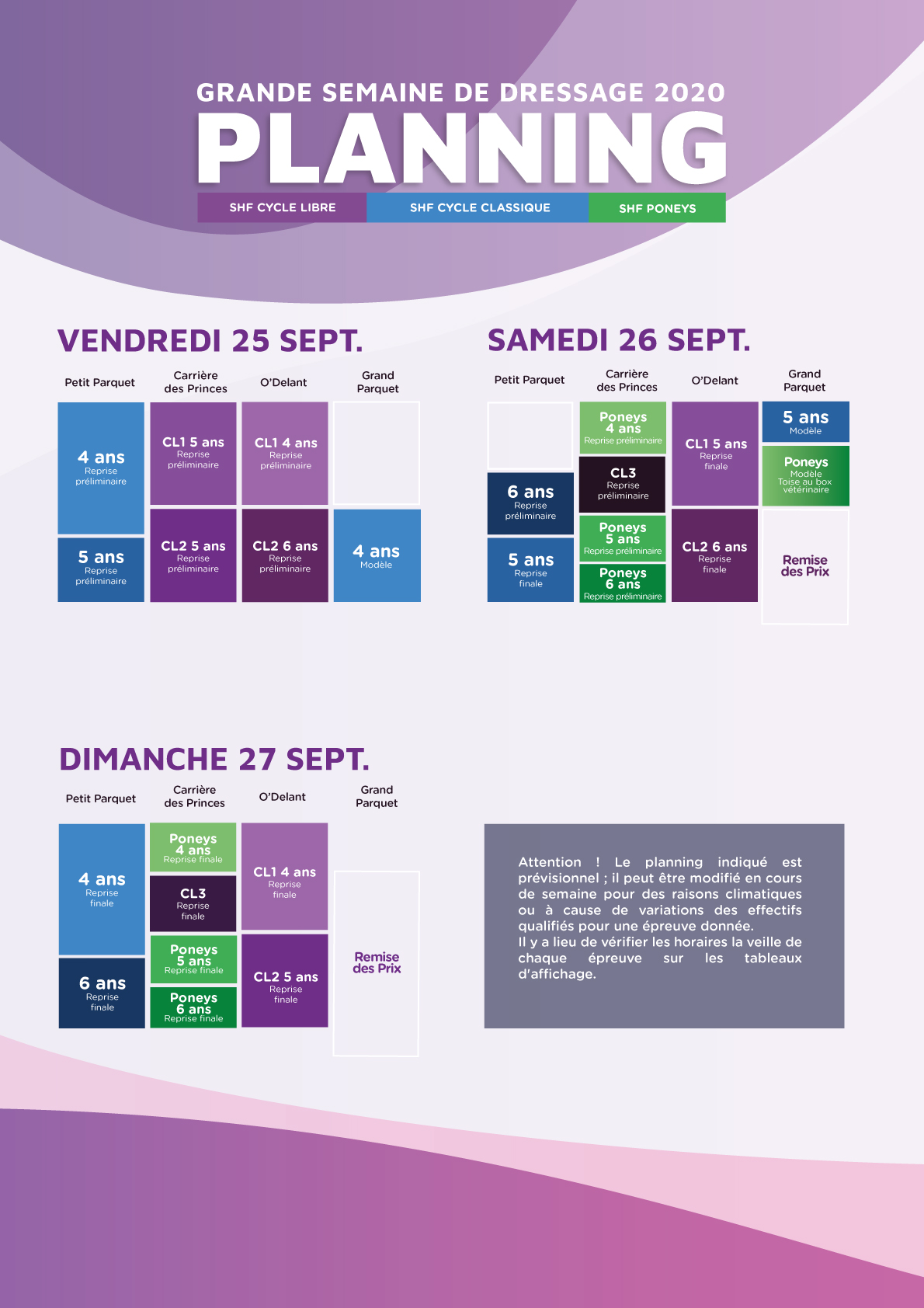 Le planning de la Grande Semaine de Dressage est désormais disponible :