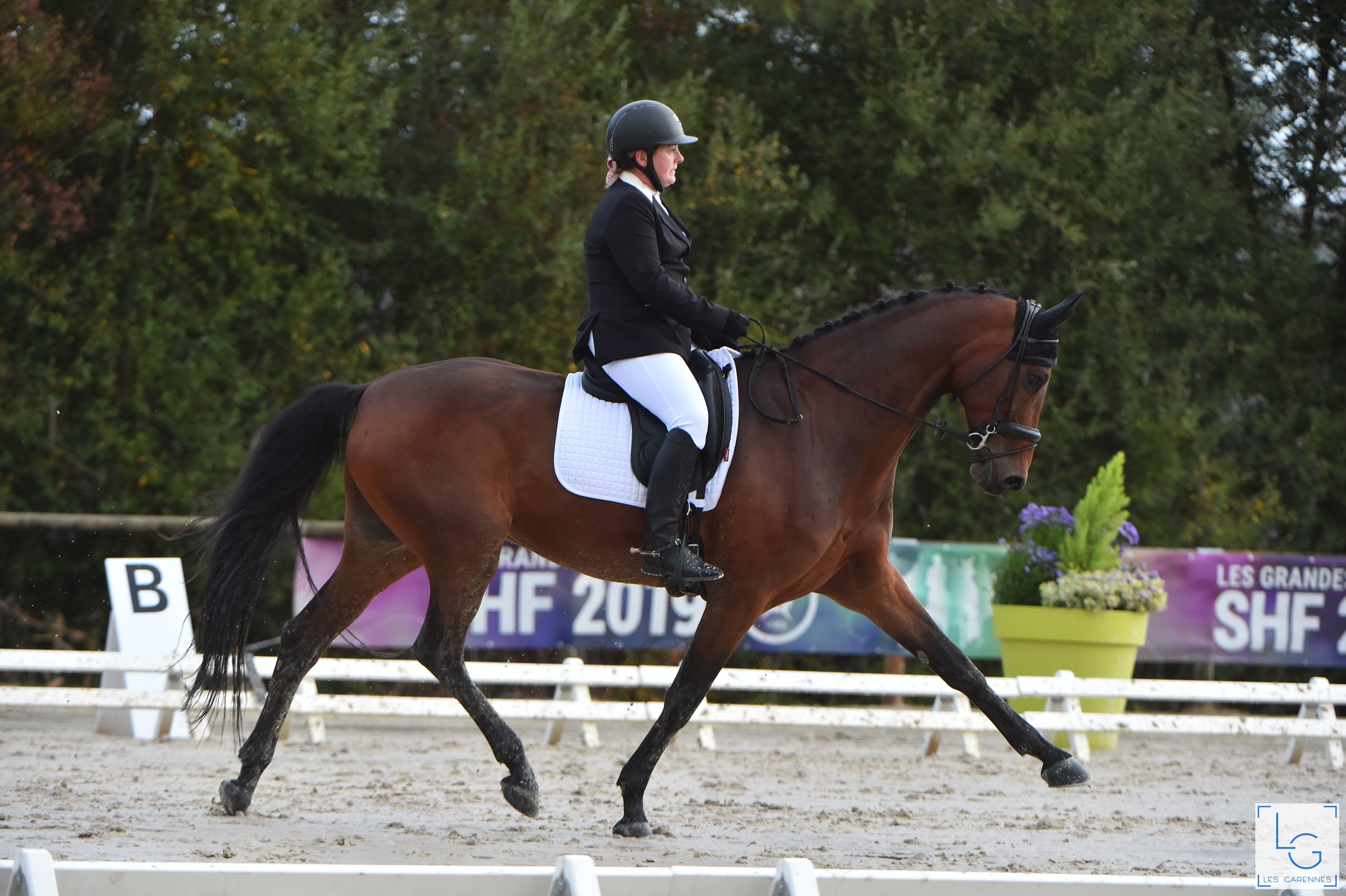 Dernier à monter sur le podium, Burghley des Blancs a réalisé une reprise finale jugée à 73,40% sous la selle de Céline Claude, sa propriétaire. Ayant participé à la Finale du Cycle Libre 1ère année 4 ans et 2ème année 5 ans sans réussite, cette année, sur le Cycle Libre 3ème année 6 ans, Céline Claude, cavalière et propriétaire, avait à cœur que son fils de Benicio et petit-fils de Don Frederico brille à Saumur : « Cette année, étant donné qu’il s’agissait de sa dernière année sur le circuit des Jeunes Chevaux, et qu’il a, durant toute la saison, reçu les compliments des juges, j’ai pensé que nous pourrions faire quelque chose à Saumur si j’arrivais à le mettre bien au travail sur le rectangle. L’objectif était donc de figurer parmi les cinq premiers. Lors de la Finale, à l’occasion de la première reprise, il avait été parfait à la détente, mais en rentrant sur la piste il a été un peu en dessous de sa qualité et un peu en arrière des jambes. En revanche, lors de la seconde reprise, il était très allant et s’est surpassé », commente Céline Claude.